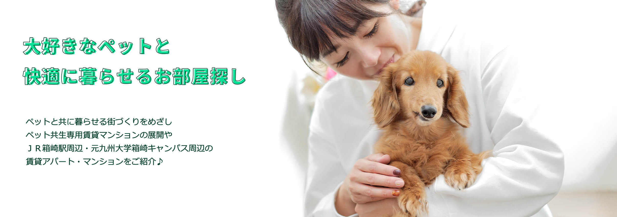 ペットと共に暮らせる街づくりをめざし、ペット共生専用賃貸マンションの展開や、当社のすぐそばにはトリミング&会員制ドッグランもございます。